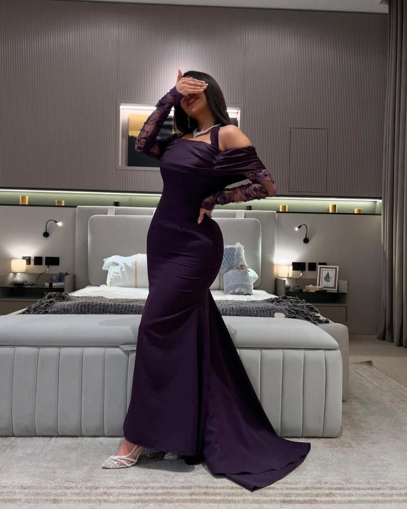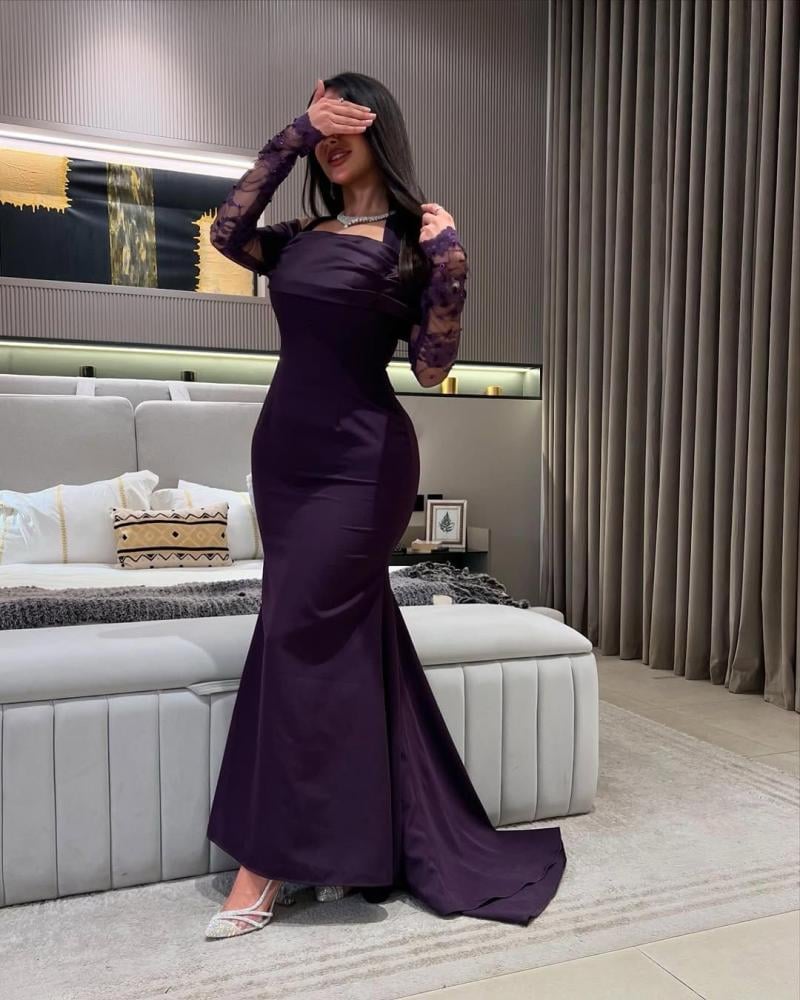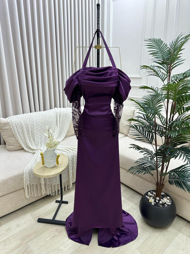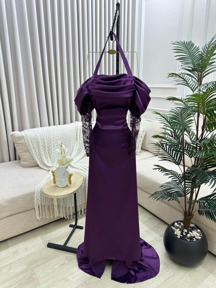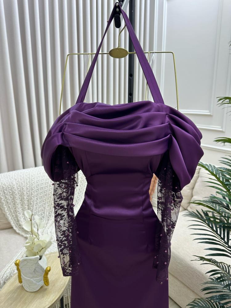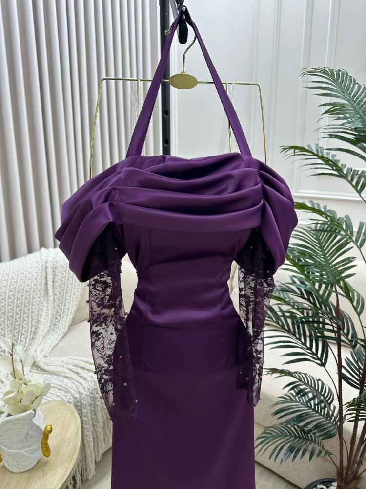 فستان ارجواني بتصميم أنثوي فاخر يجمع بين الرقي والجرأة، يناسب السهرات والمناسبات الراقية بلونه العميق وتفاصيله الأنيقة التي تعكس ذوقك الرفيع.