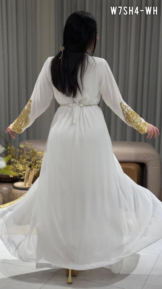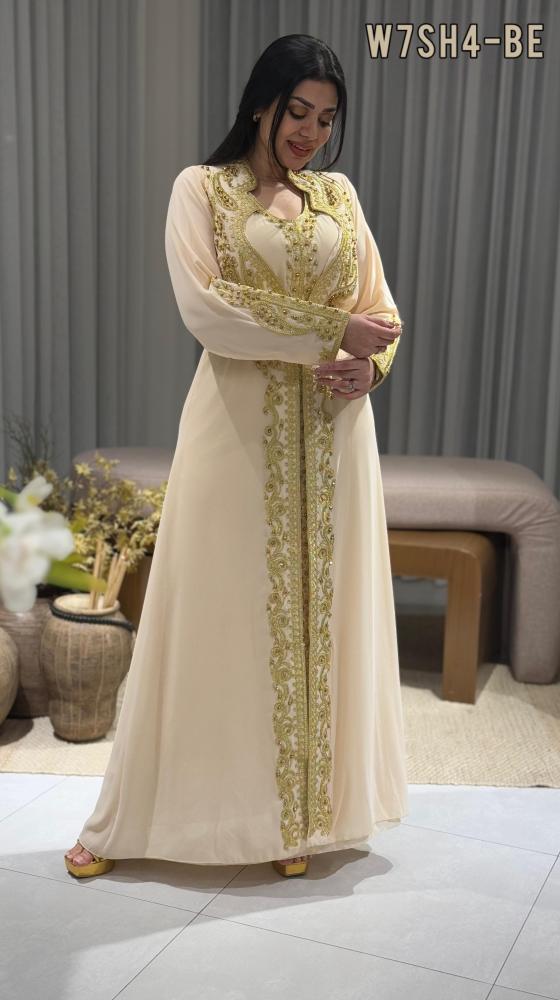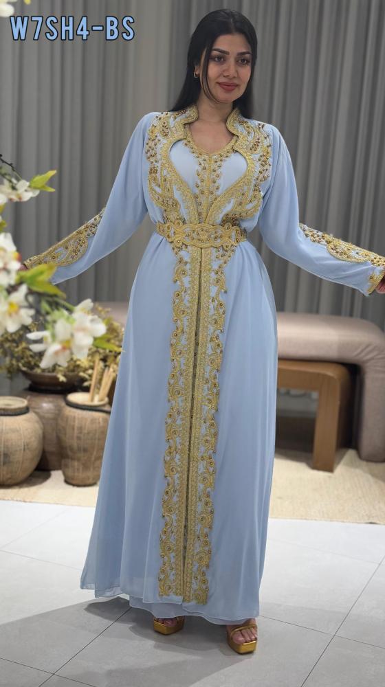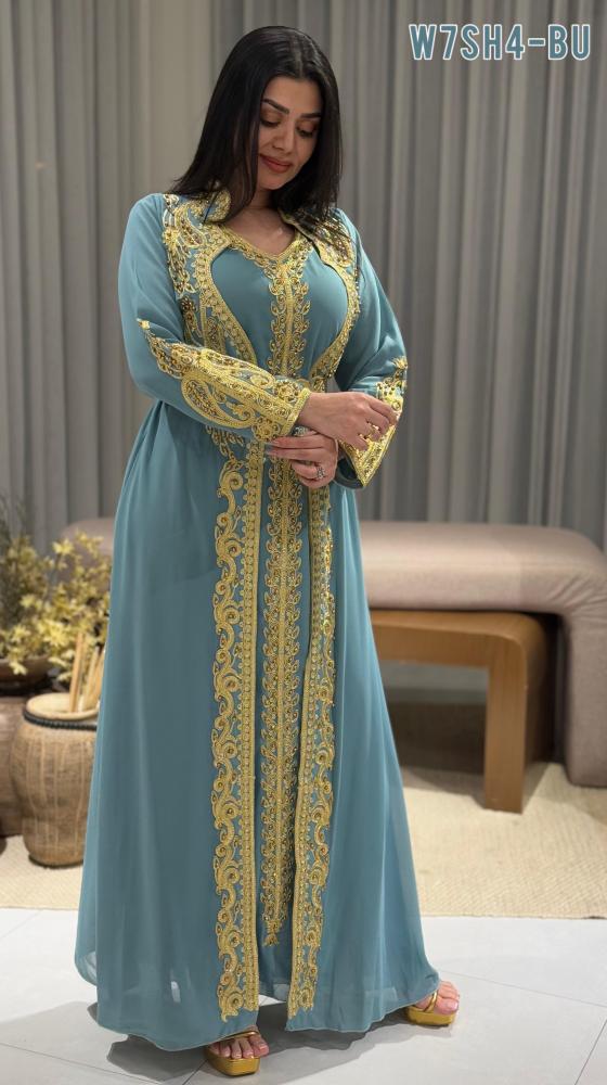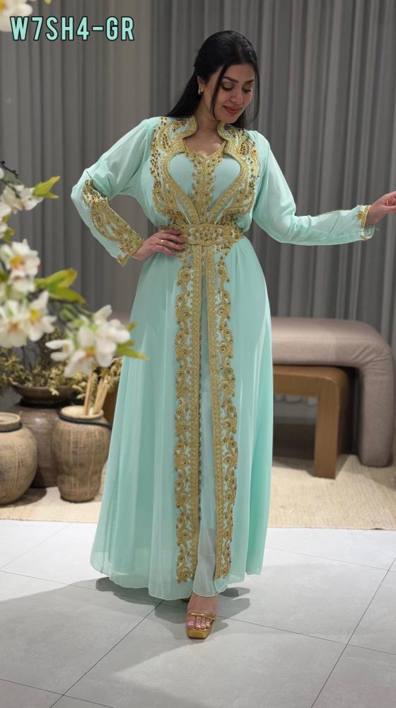 قفطان بتصميم فاخر مستوحى من اللمسة الملكية، يتميز بخامته الراقية وتفاصيله الدقيقة التي تضفي لمسة من التميز على إطلالتك في المناسبات الخاصة.
